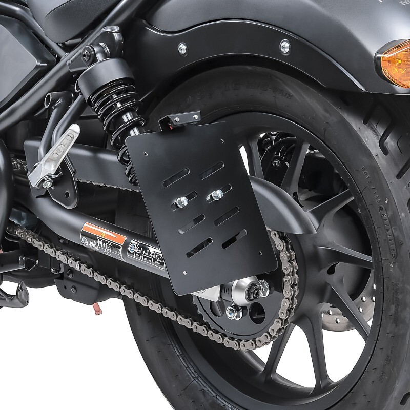 Willst du deine Yamaha Virago aufmotzen? Dieser seitliche Kennzeichenhalter von Craftride gibt deinem Bike sofort einen lässigen Custom-Look! Er wird an der Schwinge montiert und ist aus robustem 4-mm-Stahlblech gefertigt – richtig stabil und verwindungssteif. Die Halterplatte misst 180x200 mm und passt perfekt für deutsche Kennzeichen. Inklusive LED-Nummernschildleuchte und allem Montagematerial. Die Oberfläche ist verzinkt und pulverbeschichtet, bleibt also auch bei Steinschlag rostfrei. Montage ist einfach und passgenau. Keine ABE oder Teilegutachten nötig – einfach einbauen und den coolen Style genießen!